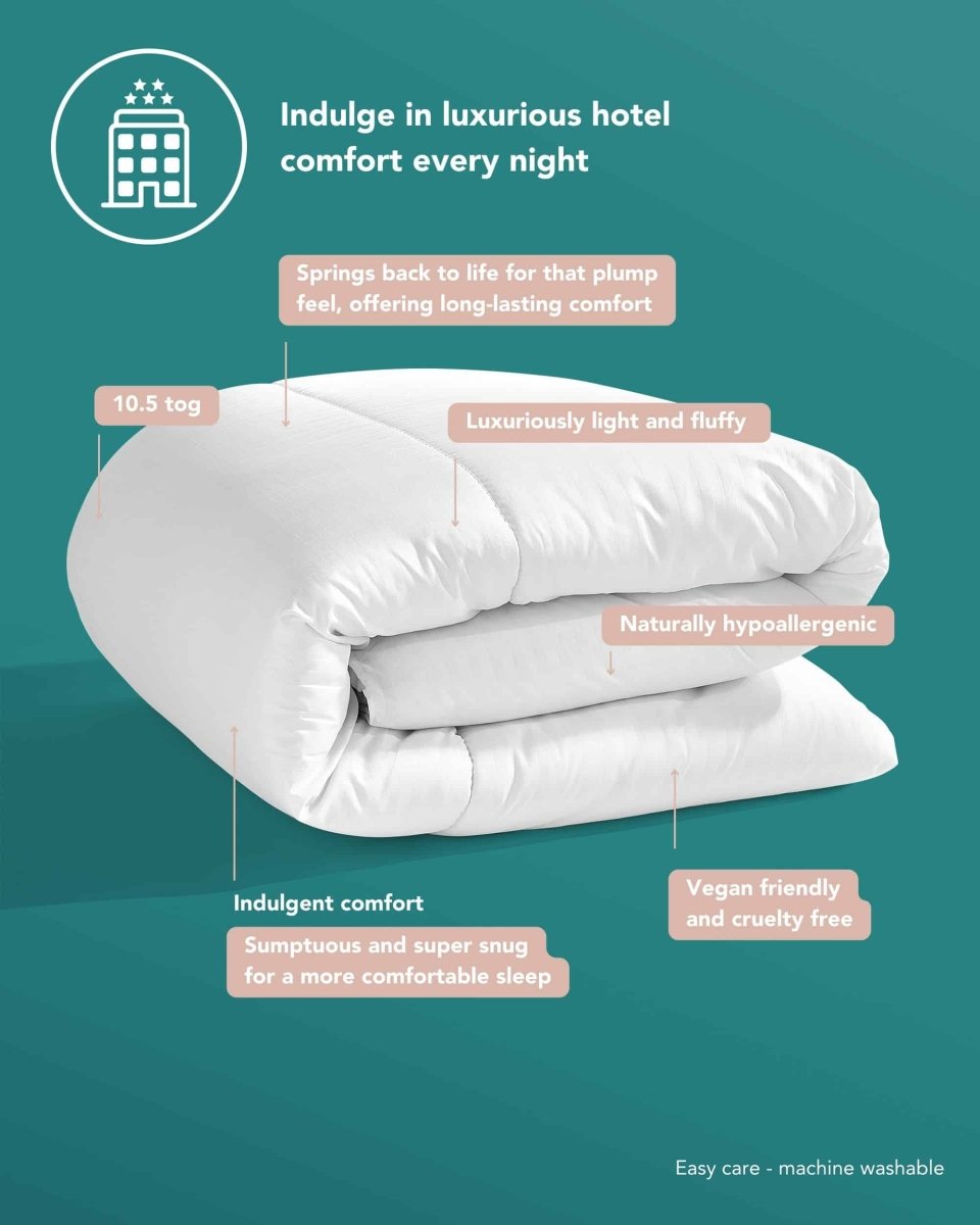 Whether you're looking to elevate your bedroom or simply enjoy a superior night's sleep, the Kallysleep 5 Star Hotel Tog Duvet delivers a touch of hotel luxury—night after night.
